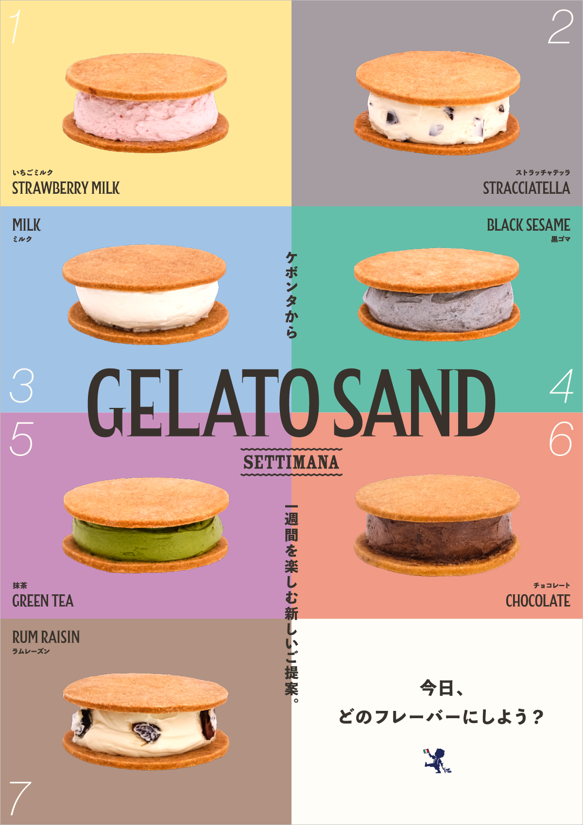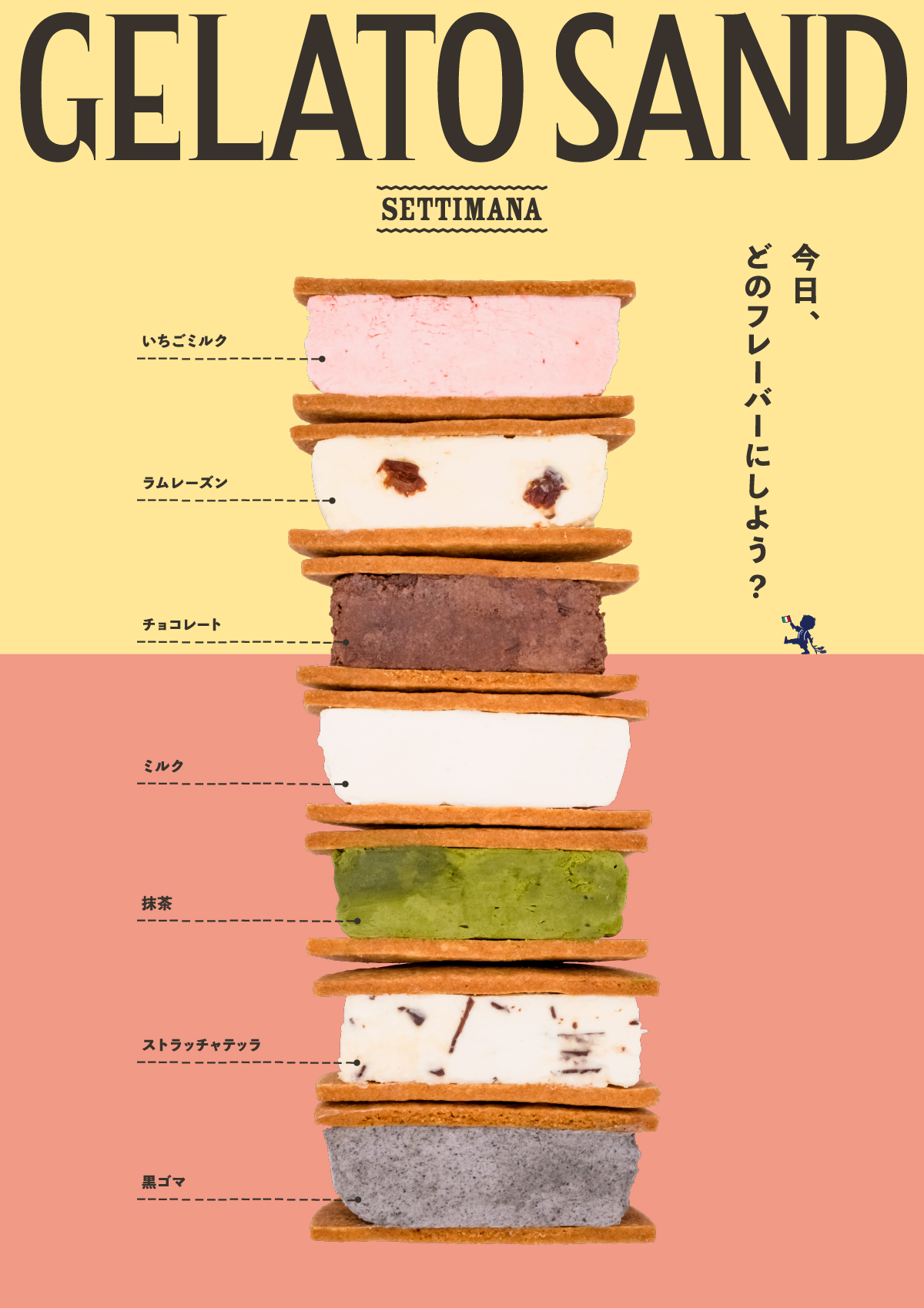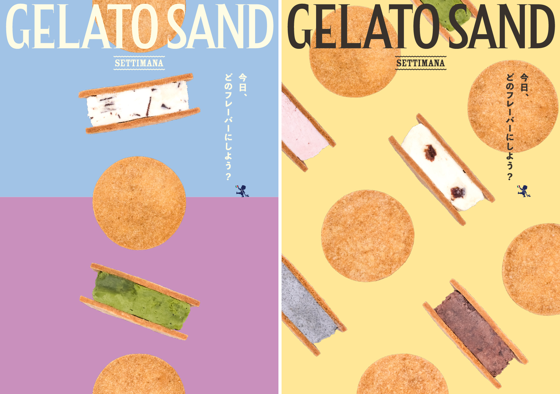 神戸のジェラート店 gelateria e gastronomia che bontà(ジェラッテリア・エ・ガストロノミア・ケ・ボンタ)のジェラートサンド「SETTIMANA」のポスター・POPのデザインを担当しました。