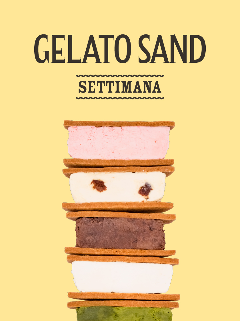 神戸のジェラート店 gelateria e gastronomia che bontà(ジェラッテリア・エ・ガストロノミア・ケ・ボンタ)のジェラートサンド「SETTIMANA」のポスター・POPのデザインを担当しました。